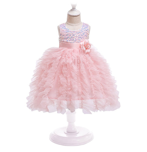 Vestido con lentejuelas, flor 3D, tutu irregular