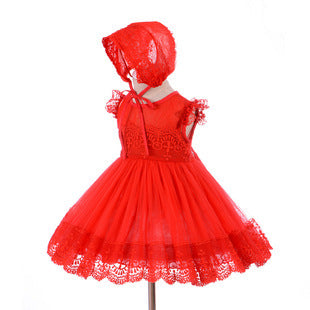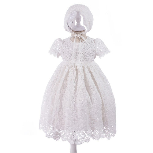 Vestido blanco largo con bordados y mangas abullonadas con gorra