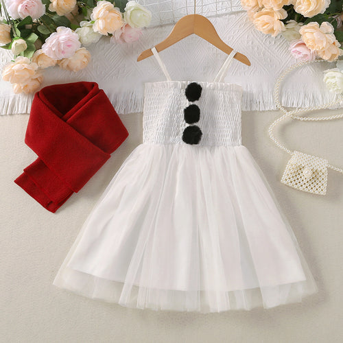 Vestido blanco engomado con botones estilo muñeco de nieve y bufanda