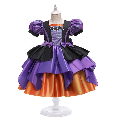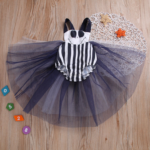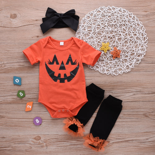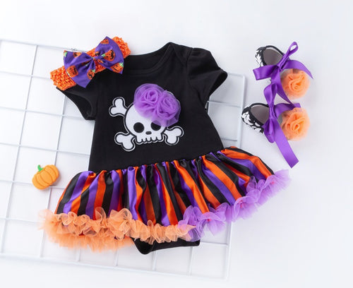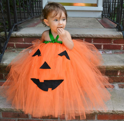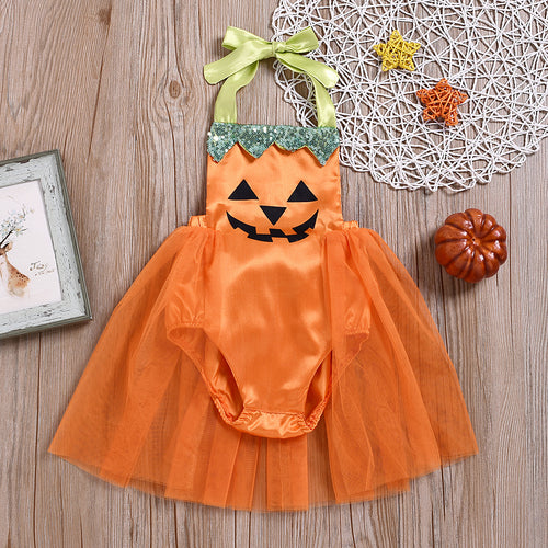 Body naranja atado al hombro de halloween con lentejuelas y tul