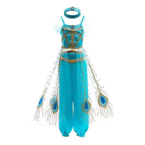 Crop top y pantalón con tul estilo princesa Jazmin con vincha