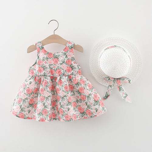 Vestido blanco con estampas de frutillas, moño y sombrero
