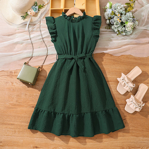 Vestido con estampas de flores, volados naranja y cartera de sandia