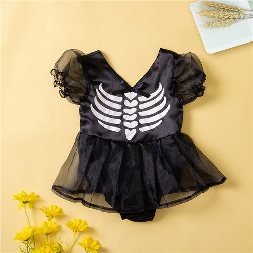 Body vestido negro con estampa de esqueleto