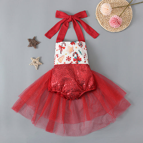 Body atado al hombro con lentejuelas, tul y estampa de Navidad