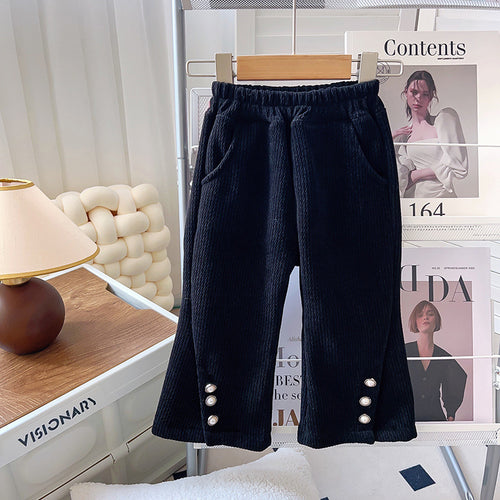 Pantalón pata ancha negro corderoy con detalles