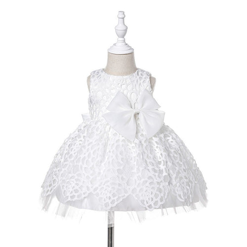Vestido blanco con encaje de tul y moño grande