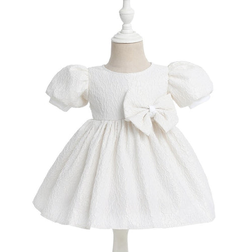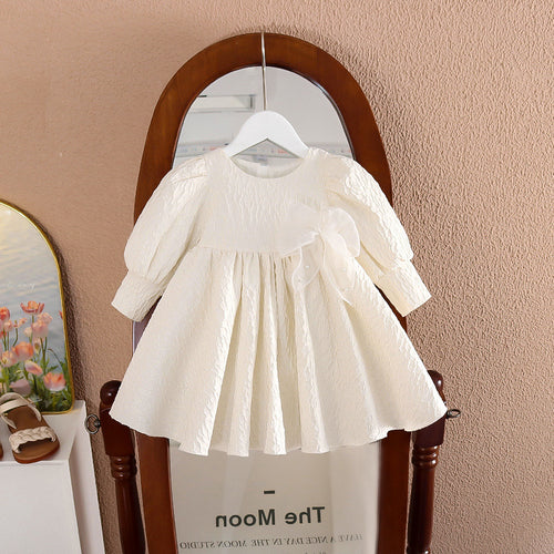 Vestido Crema con moño grande y mangas abullonadas