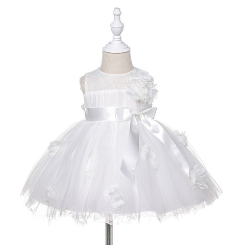 Vestido blanco con flores 3D y moño