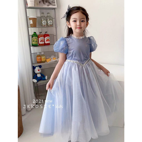 Vestido celeste estilo Elsa de Frozen con corona