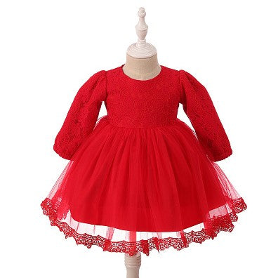 Vestido rojo con tul y encaje