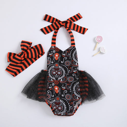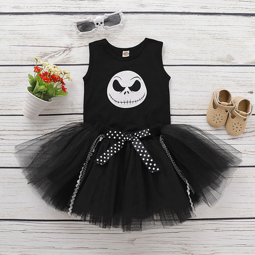 Vestido body de calavera con tutu incluye vincha y zapato