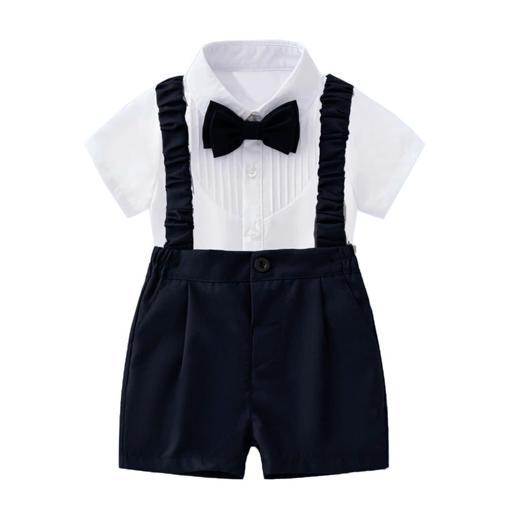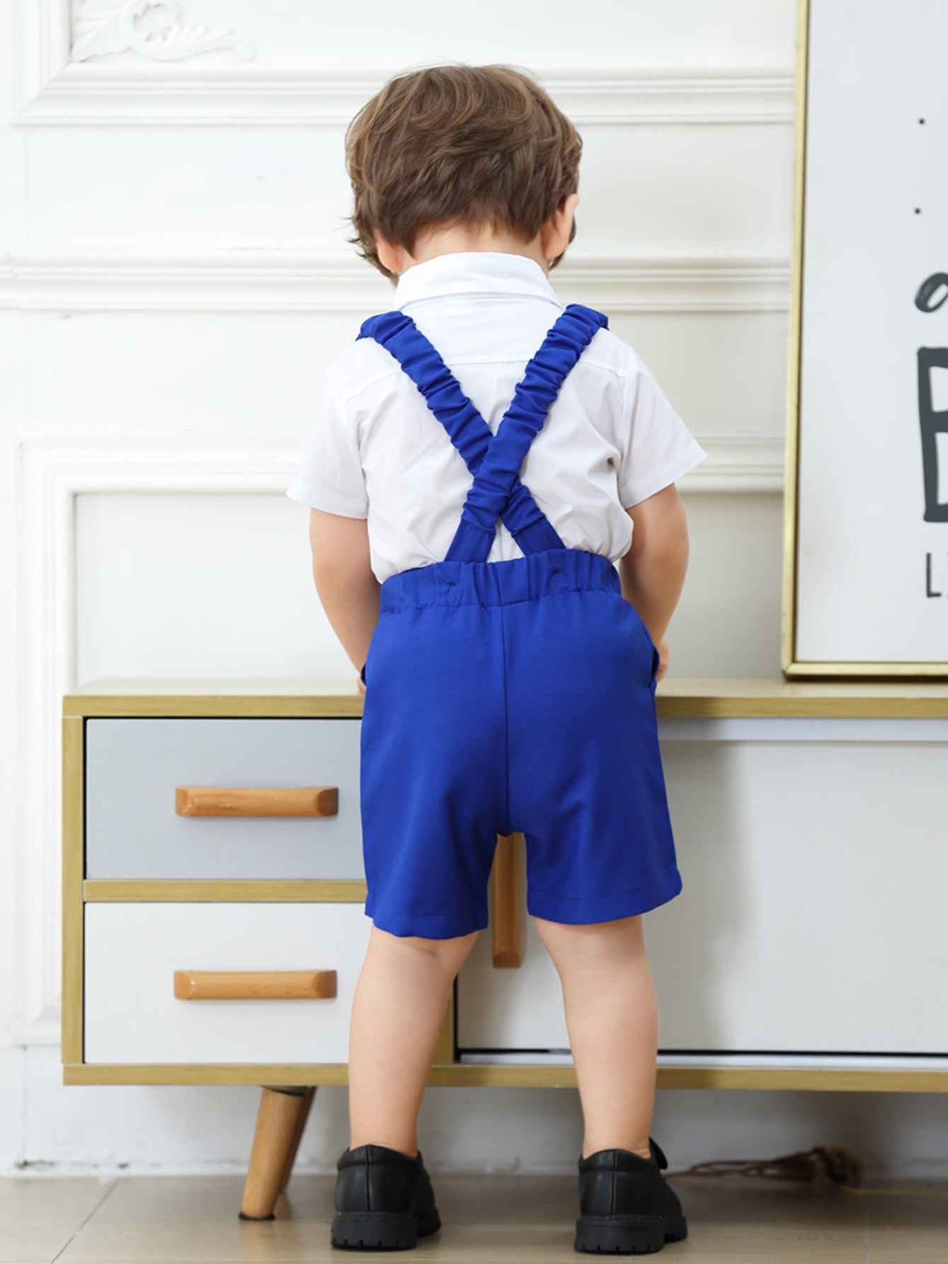 Camisa blanca con moño y short con tirante