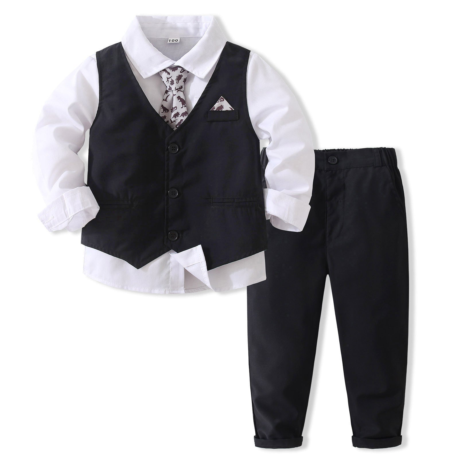 Camisa blanca con corbata de dino,chaleco y pantalón negro