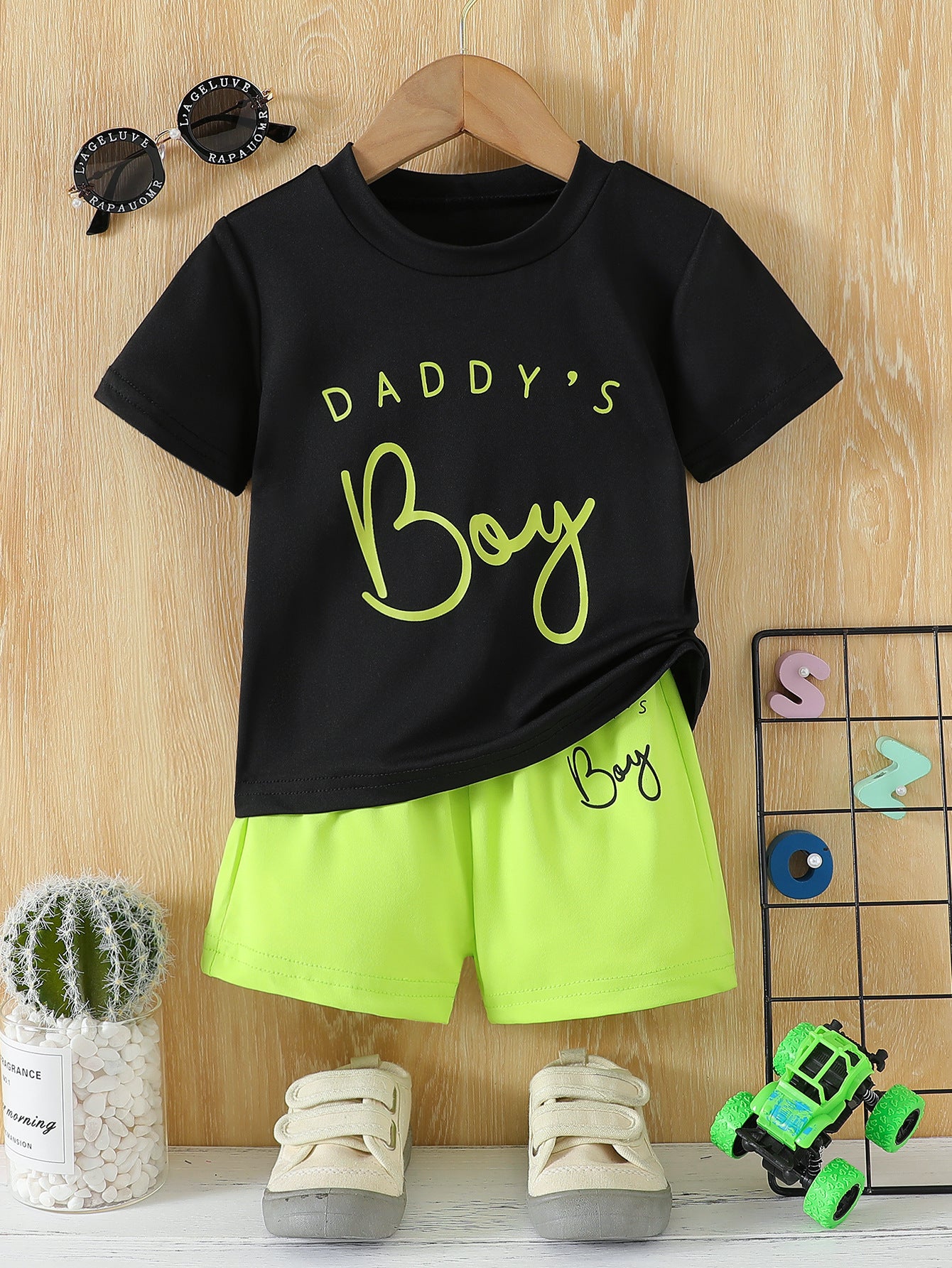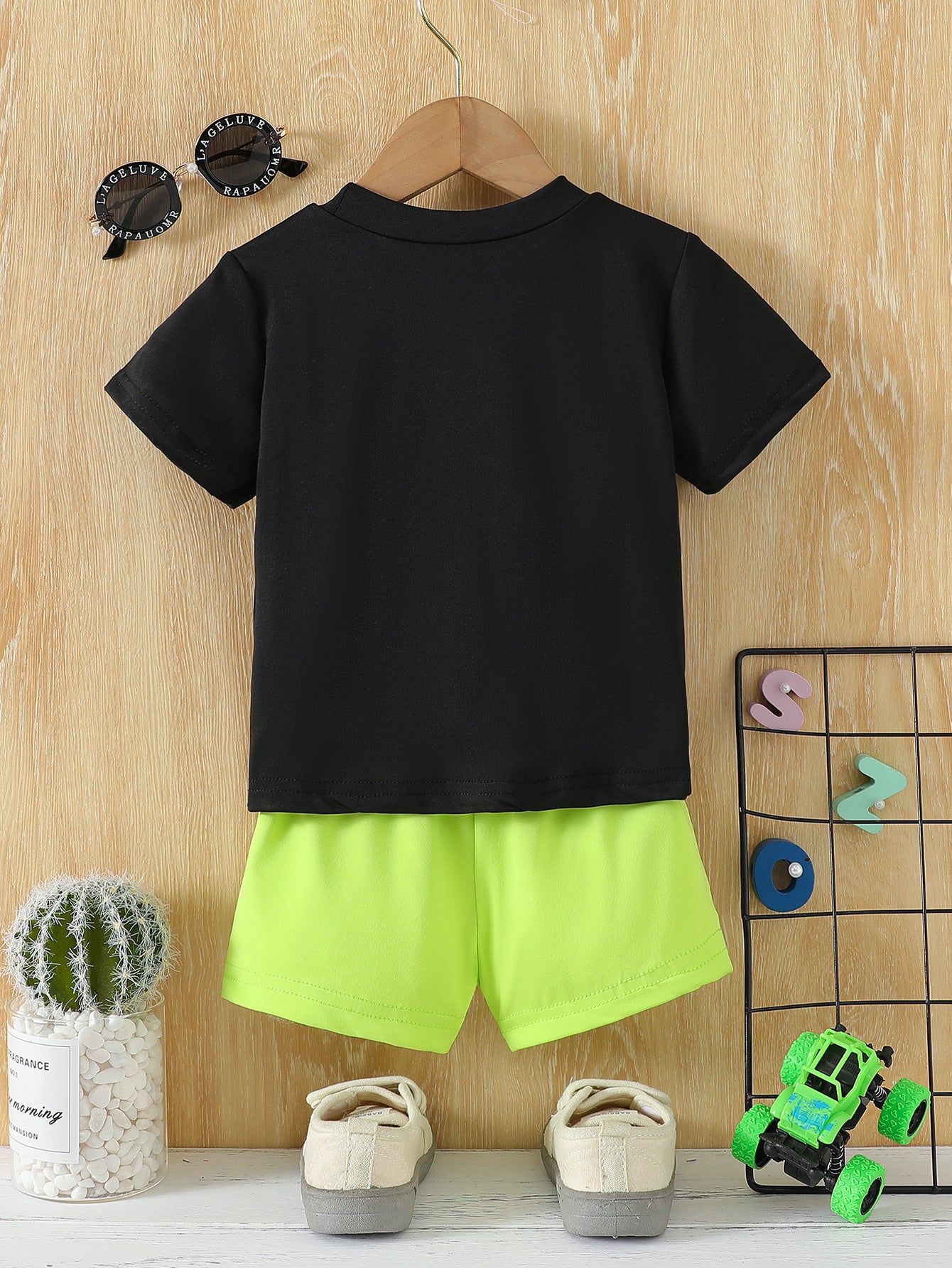 Remera negra y short con letras