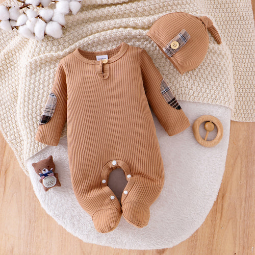 Body osito acanalado con detalles cuadrille y gorra