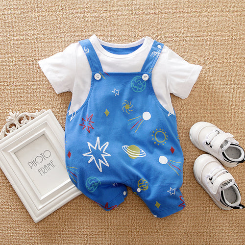 Body camisa media manga azul a rayas con moño y pantalón jeans con tirante
