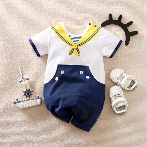 Body enterizo doble color a rayas, detalle de barco con gorra y orejas