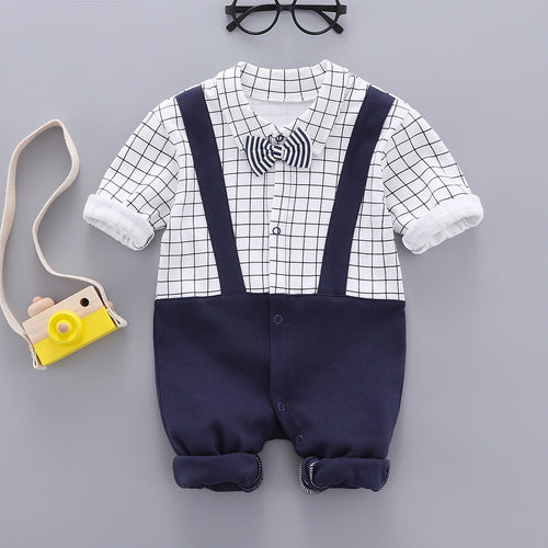 Body enterizo azul marino con mangas cuadrille y moño a rayas