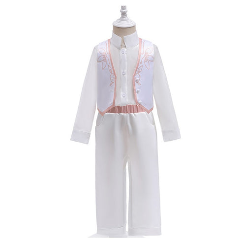 Camisa, pantalón y chaleco blanco de secda con detalle en rose estilo Principe Antonio Madrigal Encanto