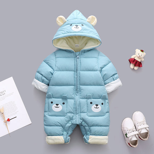 Body enterizo polar celeste con detalle de oso animal, capucha y orejas
