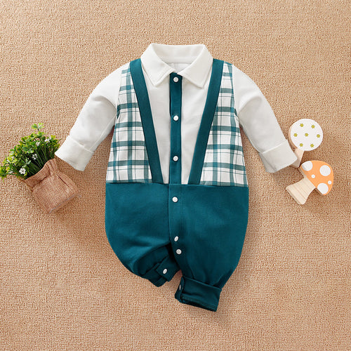 Body camisa blanca con estampas de zorro, chaleco azul de zigzag con moño y pantalón beige