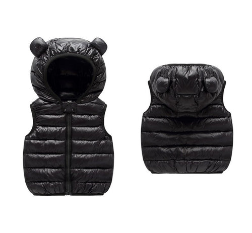 Campera de forro polar con capucha bordado de oso, chaleco de pluma y pantalón