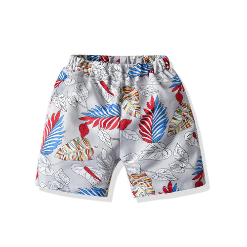 Camisa blanco estampado de dino con short beige, tirante, moño y boina