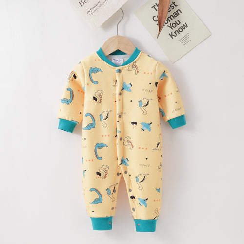Body enterizo amarillo con forro polar y estampas de dinosaurios