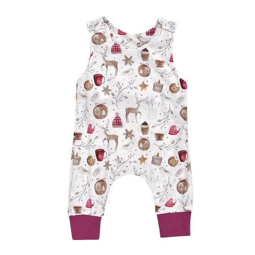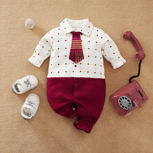 Camisa blanca con estampas de dino, moño y pantalón con tirante naranja