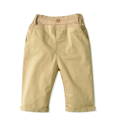 Camisa azul cuadrille, short caqui con tirantes y moño