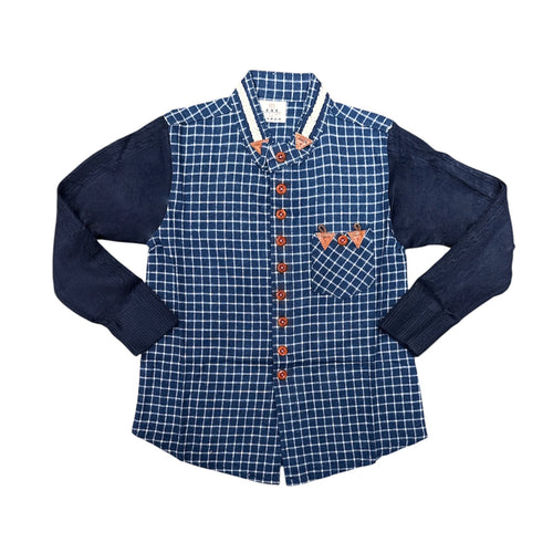 Camisa azul cuadrille con mangas de hilo