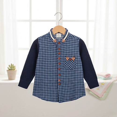 Body gris y jardinera azul marino con estampa de tiburones, incluye medias