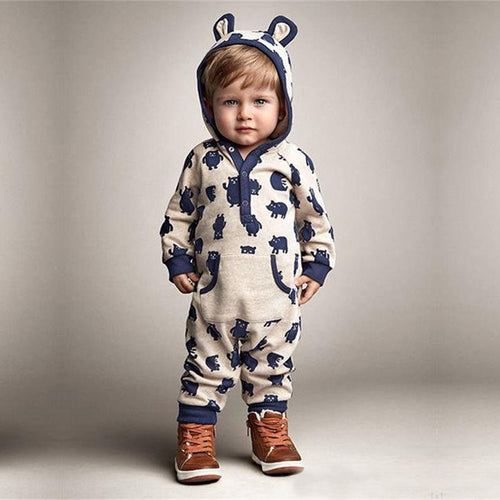 Body enterizo mangas largas de animales con capucha y bolsillo