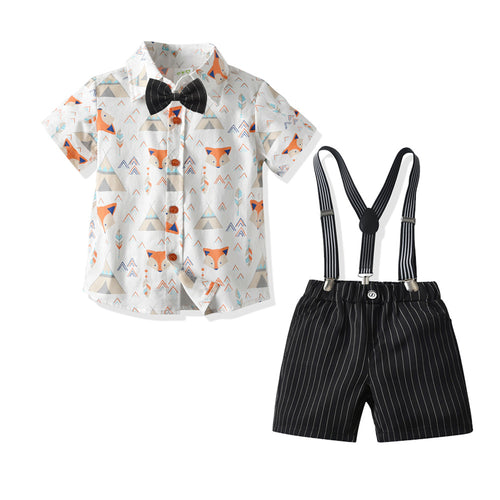 Camisa estampado zorro, moño y short con tirantes