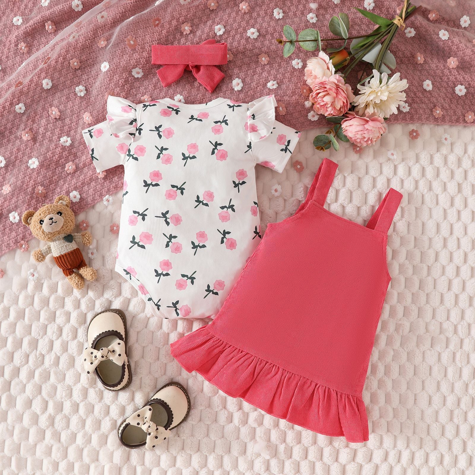 Body blanco con estampas y vestido corderoy coral de oso con vincha