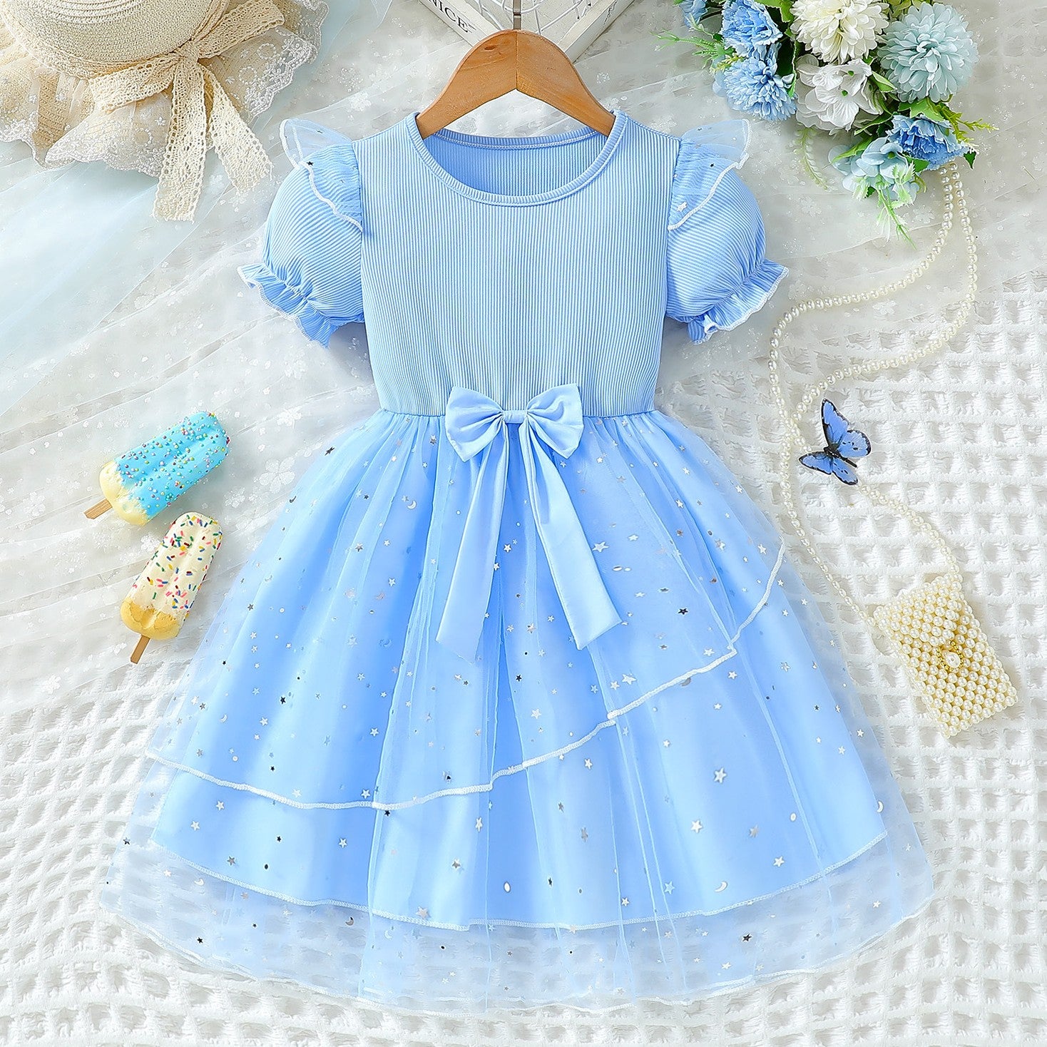 • Carregar imagem no visualizador da galeria, Vestido celeste con volados, moño y tul